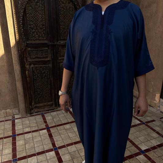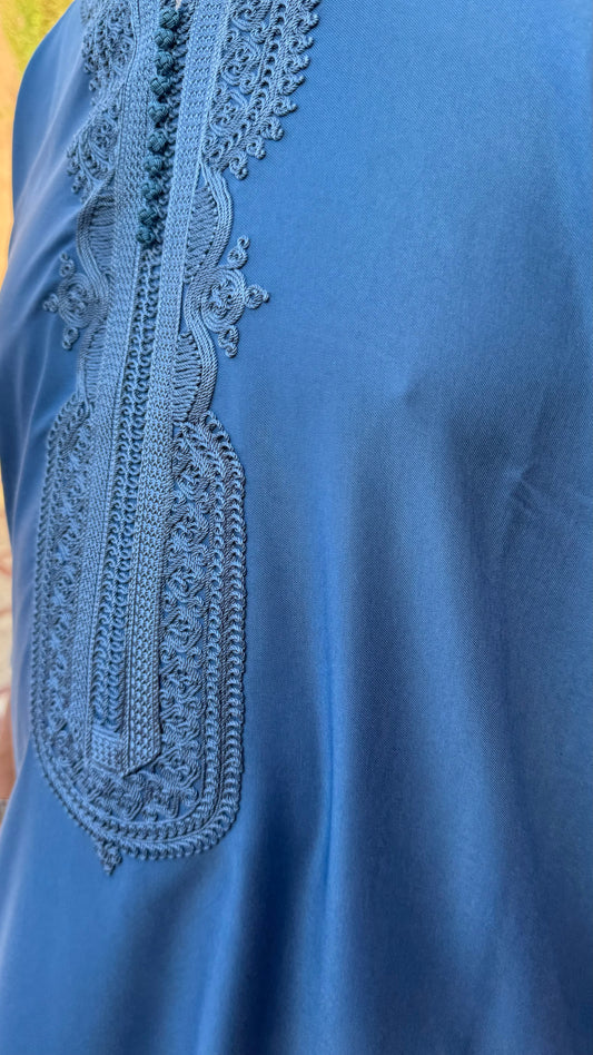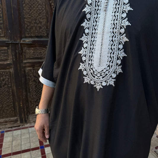 Contrast Stitch Black/Silver Moroccan Gandoura