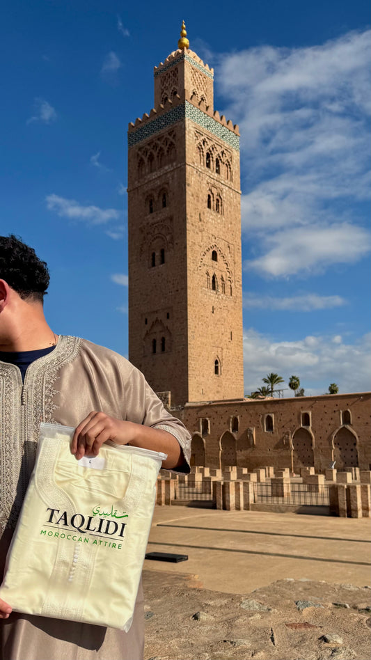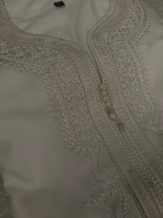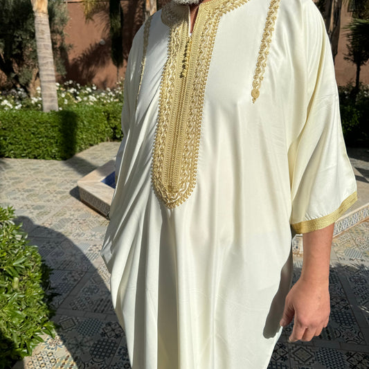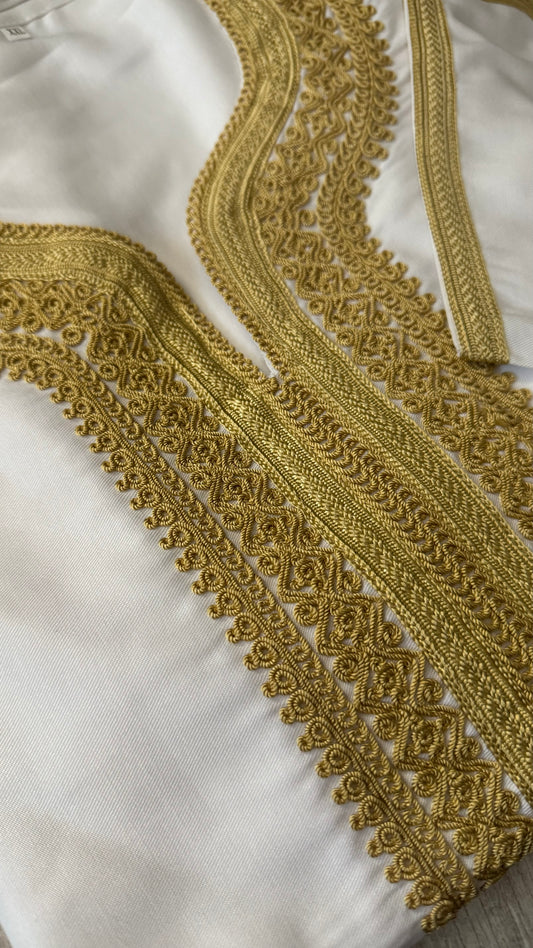 Contrast Stitch Cream/Gold Moroccan Gandoura