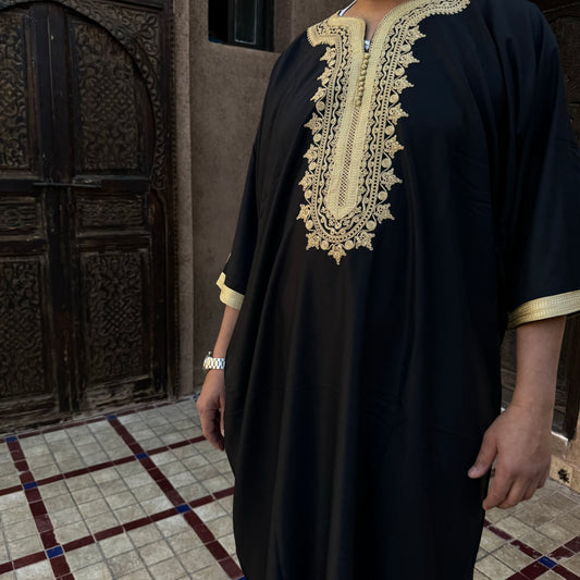 Contrast Stitch Black/Gold Moroccan Gandoura